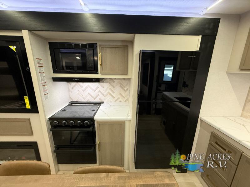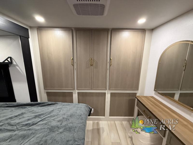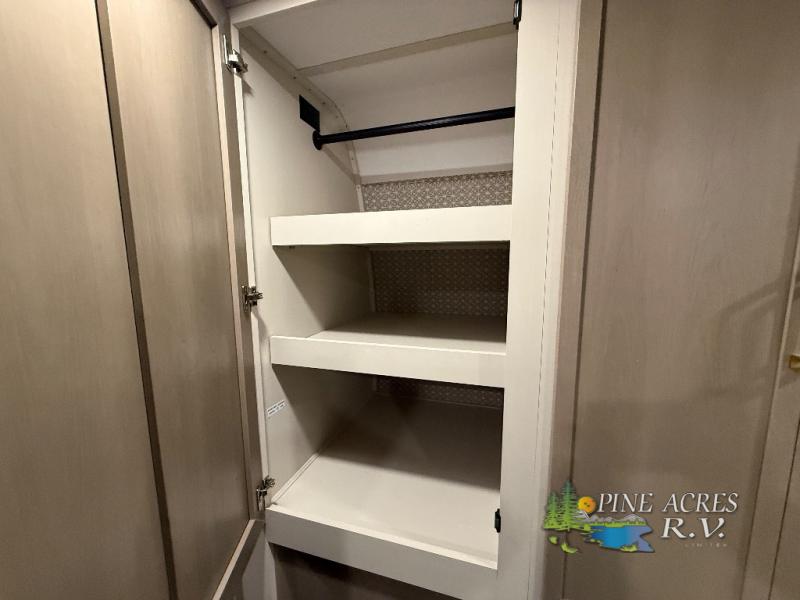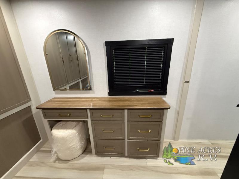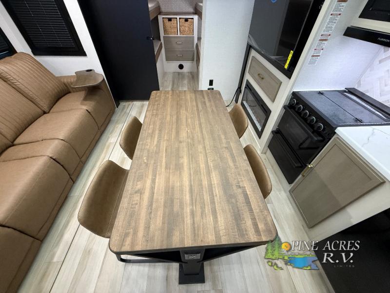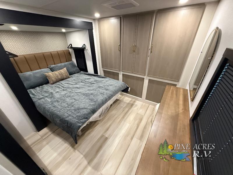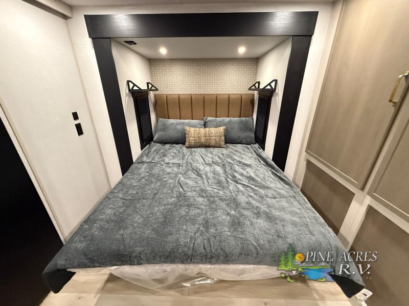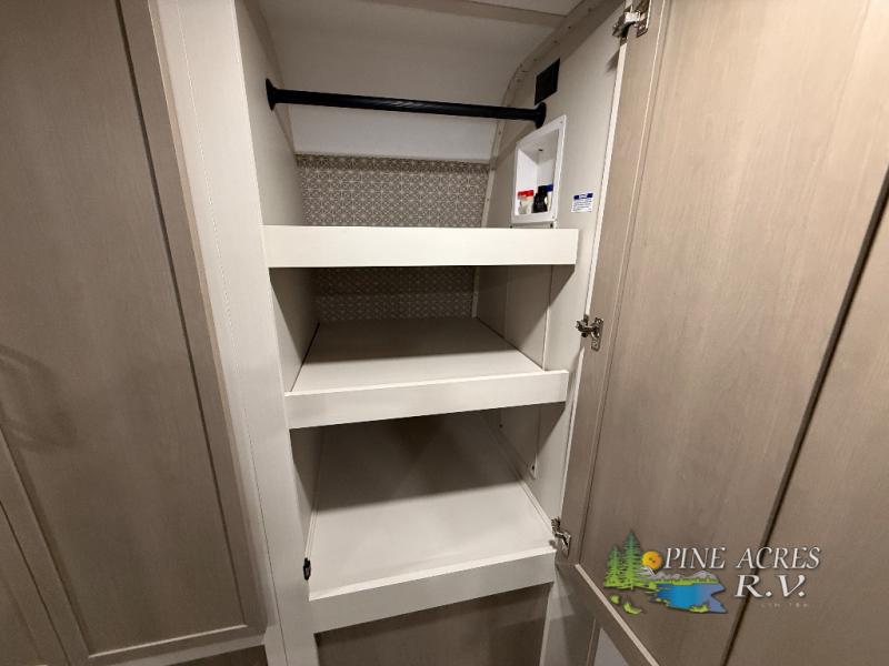 With any Wildwood Heritage Glen travel trailer by Forest River, the quality construction, attention to detail and design along with a bright and welcoming interior allows you to relax in comfort. Each model includes a WeatherShield one piece fiberglass roof, nitrogen-filled radial tires, and an enclosed underbelly with 12V tank heaters on all holding tanks for added protection. You will appreciate the on-demand tankless water heater, along with power stabilizer and tongue jacks, and an extra-large pass-thru storage with slam latch baggage doors. Head inside to enjoy matte gold hardware, wood door casings in place of plastic door casings, and an ultimate interior lighting upgrade with 4k puck/strip lights and a stylish LED back-lit bath mirror!