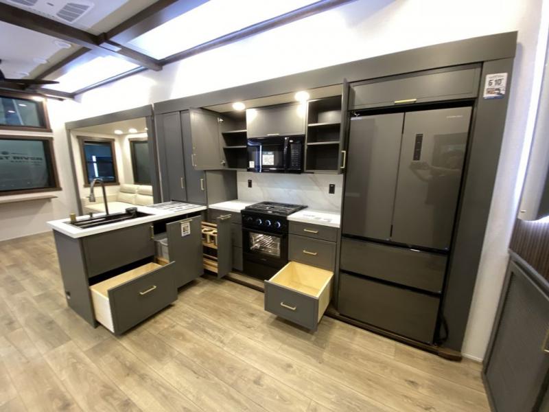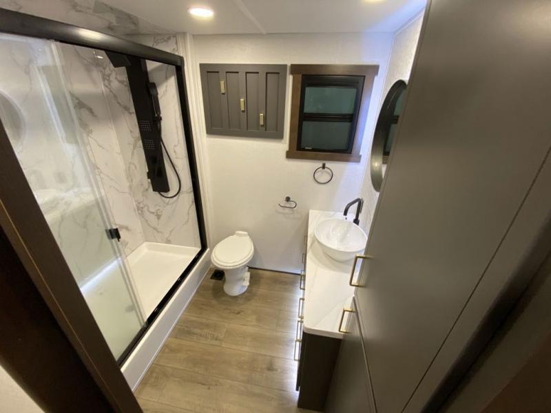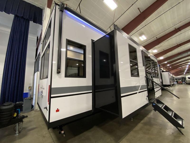 With generous utility capacities, high-value finishes, and residential-like amenities, it’s less a travel-ready trailer and more a mobile retreat built for comfort, style, and ease.