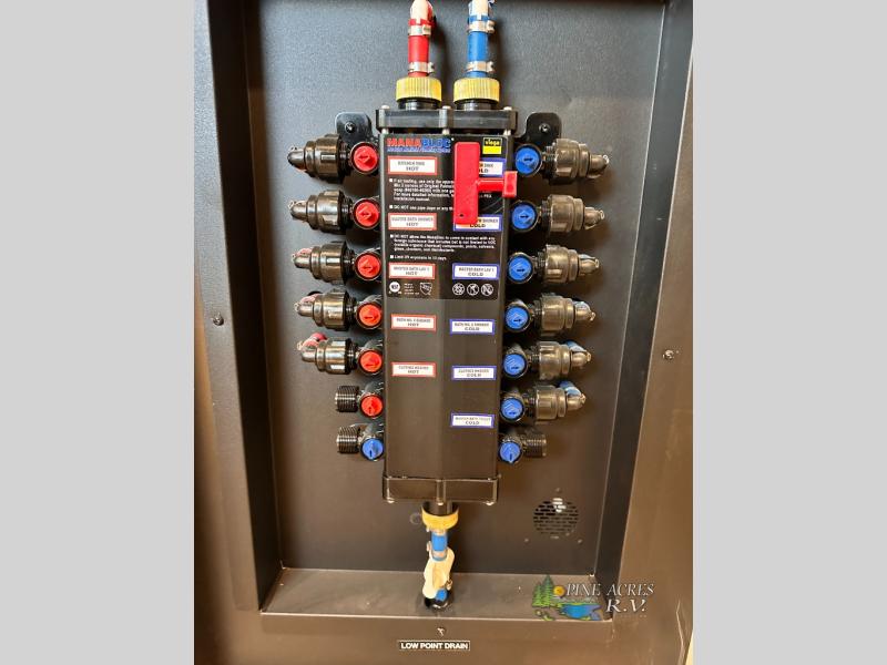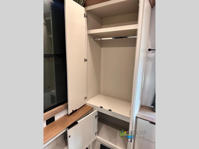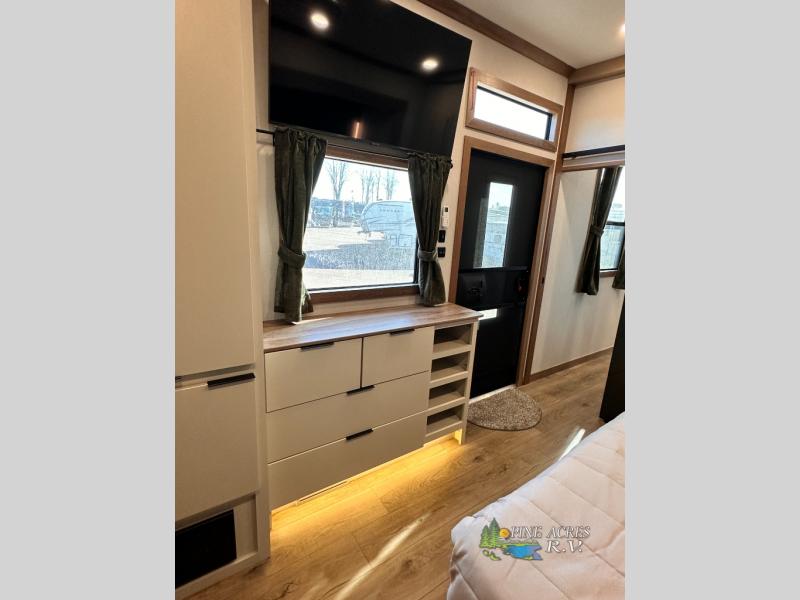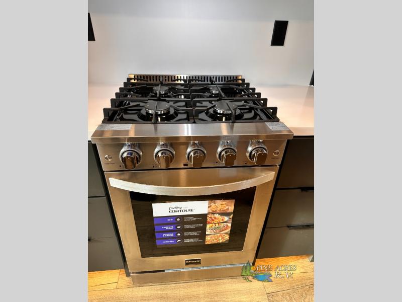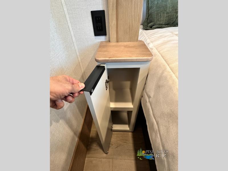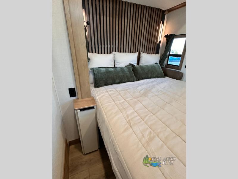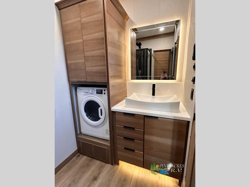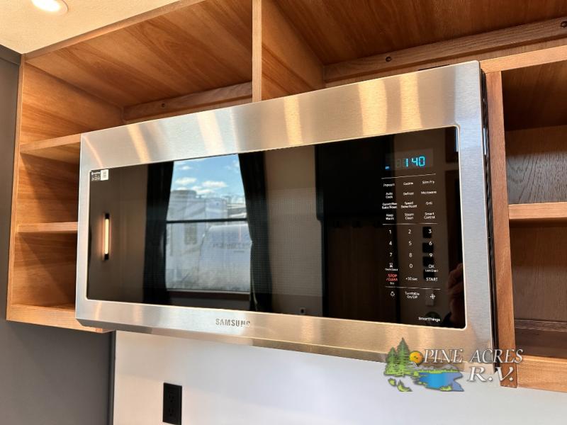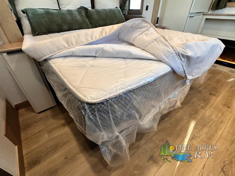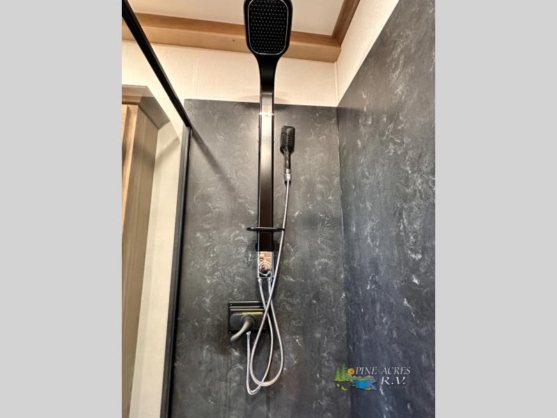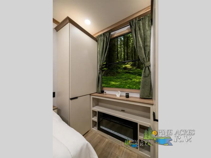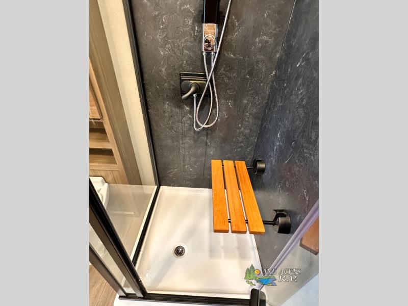 Luxury abounds in the Lost Pines destination trailer by Forest River. Each model features 3" hung wall construction, a rolled fiberglass roof, a thermofoil lined underbelly, and an Azdel gel coat fiberglass exterior wall for added durability. The full-body paint with 4x Clear Coat is sure to turn heads as you travel to your destination, and the LCI Road Armor suspension system will provide a smooth tow. You'll also find dual 40 lb. LP tanks outside, along with a heated full docking station, and MORryde entry steps and Safe-T-Rail. The interior of the Lost Pines is outfitted with luxury vinyl flooring, residential appliances, LED lighting throughout, plus upgraded solid surface countertops and backsplash!