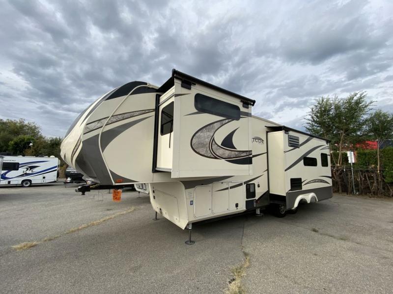 With each Solitude fifth wheel by Grand Design you will receive affordable luxury for your extended stays or weekend get-a-ways. From the solid foundation including a Equa-Flex suspension to the taller ceilings, taller and deeper cabinets, the power reclining theatre seating with swivel table including a heat and massage function, a pet dish drawer, a Stealth AC system, and the Weather-Tek package which allows you to travel any season you choose. It's time to enjoy luxury living where ever you decide to land.