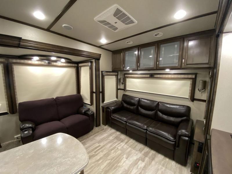 If you are on the search for a livable fifth wheel for those month long trips this Solitude 310GK might be the one! Just imagine cooking on a professional grade stainless steel cooktop and inside a built-in oven or convection microwave. You can prepare the meals on the kitchen island, and store leftovers in the stainless steel 18 cu. ft. four door refrigerator. When you and your spouse aren't outside, you can watch your favorite show on the big screen LED TV in the living area while staying warm by the fireplace. You will find plenty of storage throughout including for your shoes, dry goods, linens, and your wardrobe. You might even like to choose a few options such as adding a washer and dryer, a dishwasher, a king size bed, or even a pull-out kitchen outside. Come see how this Solitude will make life comfortable for years to come!