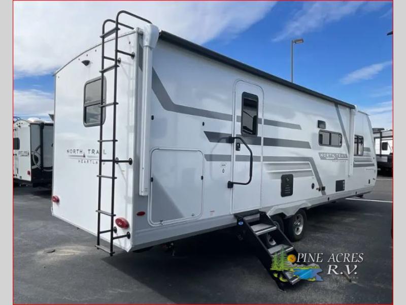Built for comfort, durability, and modern convenience, these Heartland North Trail travel trailers offer everything you need for a premium camping experience. Each model features a strong American-made Norco Z-frame with an aerodynamic front profile and front diamond plating for added protection. The exclusive TrusstXL Roof System and CoreShield vacuum-bonded walls with Azdel provide superior insulation. Inside, enjoy residential comforts like seamless countertops, solid hardwood maple cabinet doors, LED lighting throughout, and 60 x 80 in. queen beds or 60 x 76 in. Murphy beds. Tech-ready features include an LED smart TV, USB ports, TPMS monitoring, and a 200W solar panel with 30 AMP digital controller. With a Quiet Series A/C, on-demand 60K BTU water heater, with these trailers you are equipped to make every trip comfortable and adventure-ready.