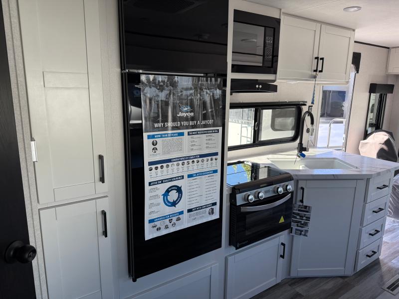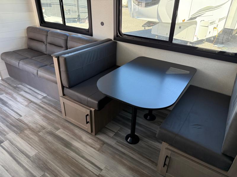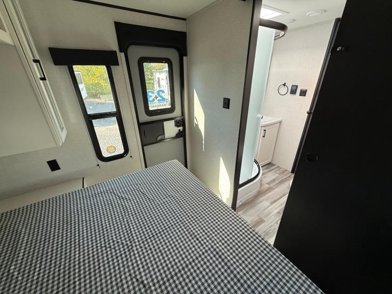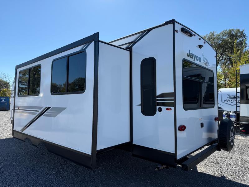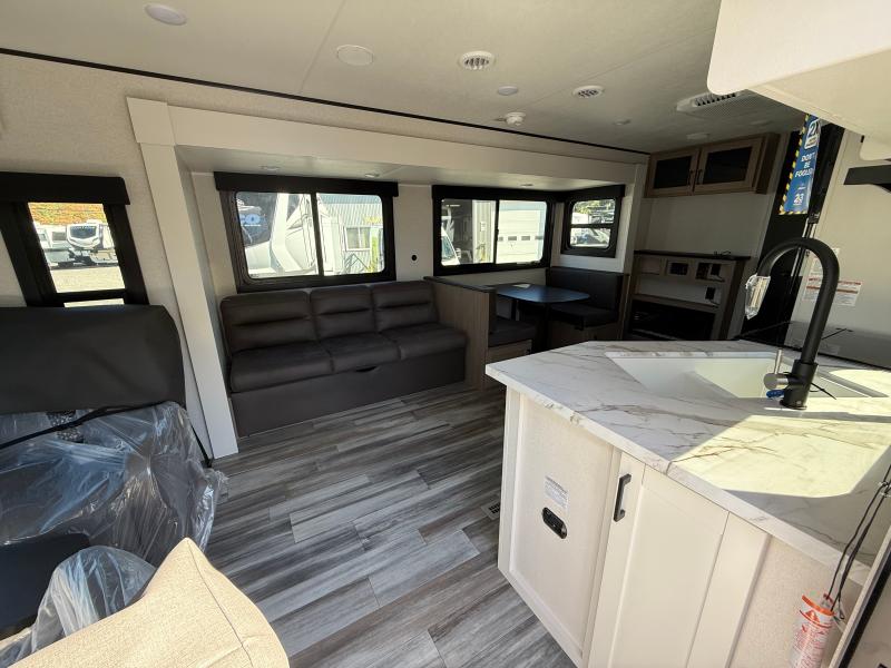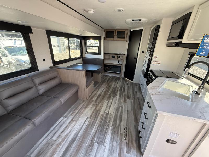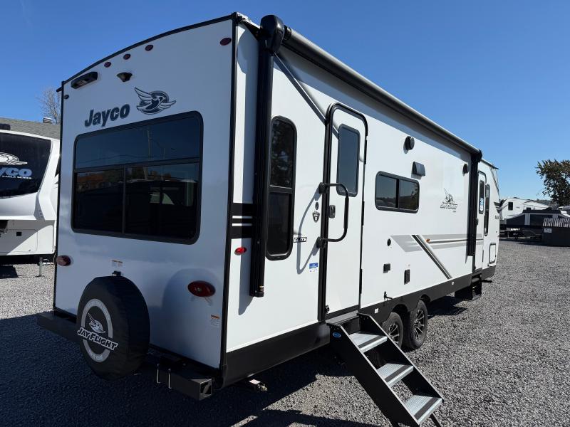 Jay Flight 262RLS 2026 une roulotte spacieuse et confortable idéale pour vos escapades à deux. Elle dispose d’un lit queen et d’une banquette offrant confort et praticité pour profiter pleinement de vos aventures.