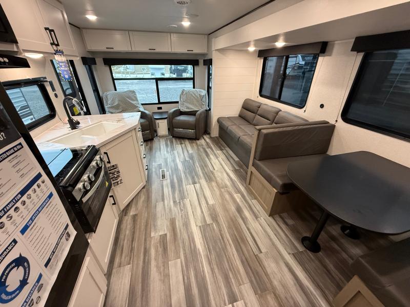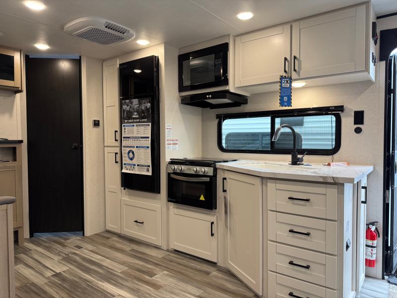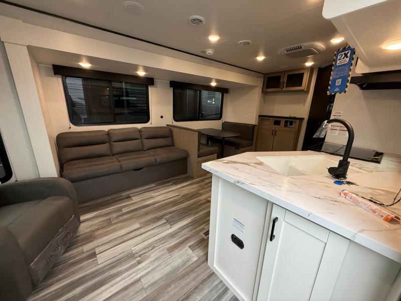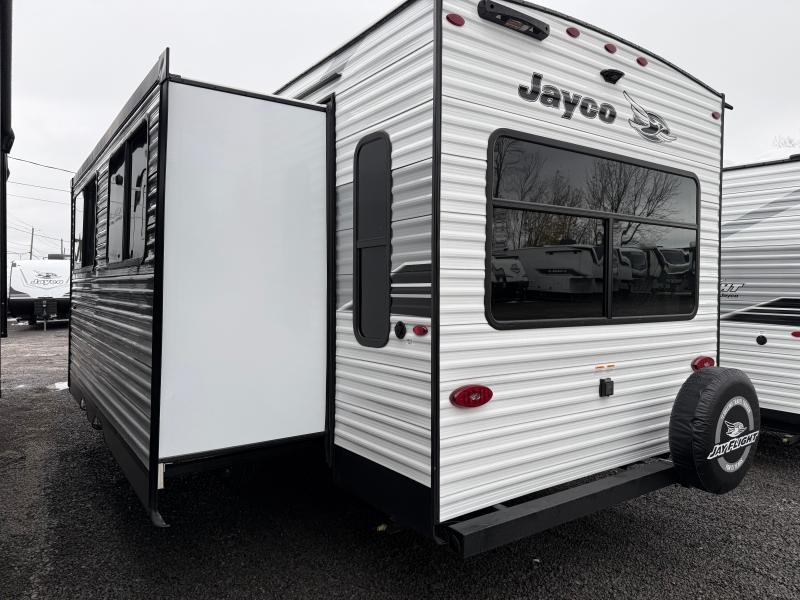 La Jay Flight 262RLS 2026 allie confort et praticité pour vos séjours en camping. Elle comprend une banquette conviviale et un lit queen confortable offrant un espace de repos agréable pour vos escapades.