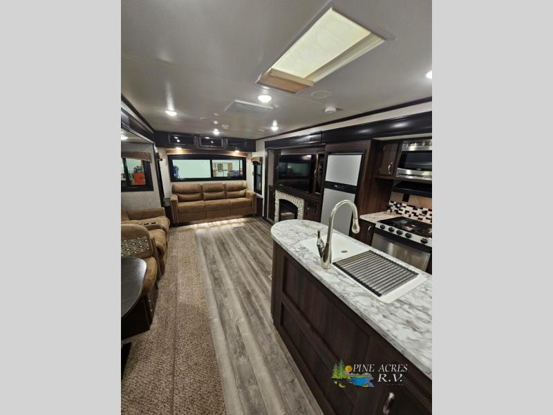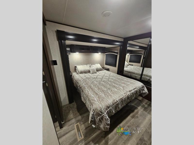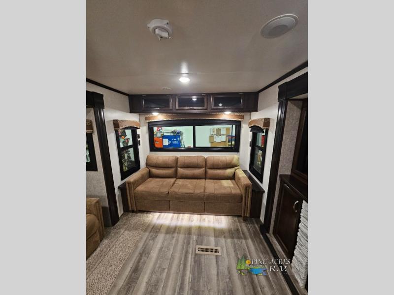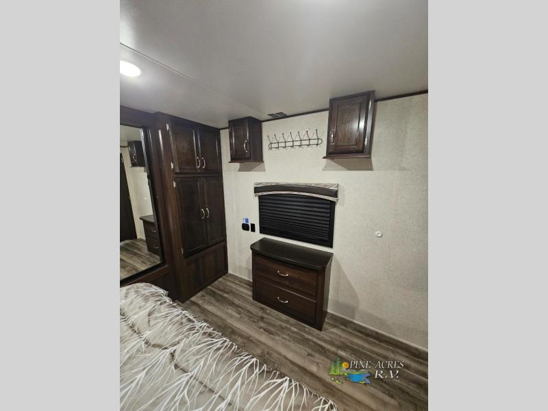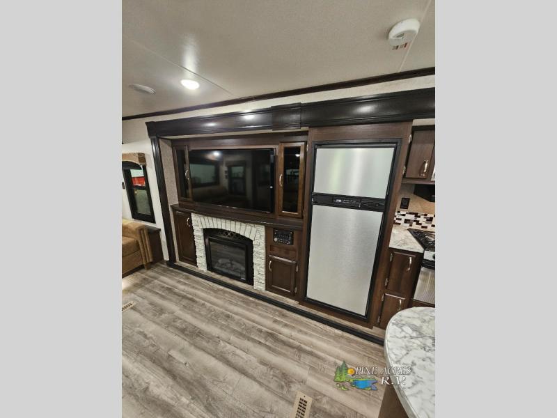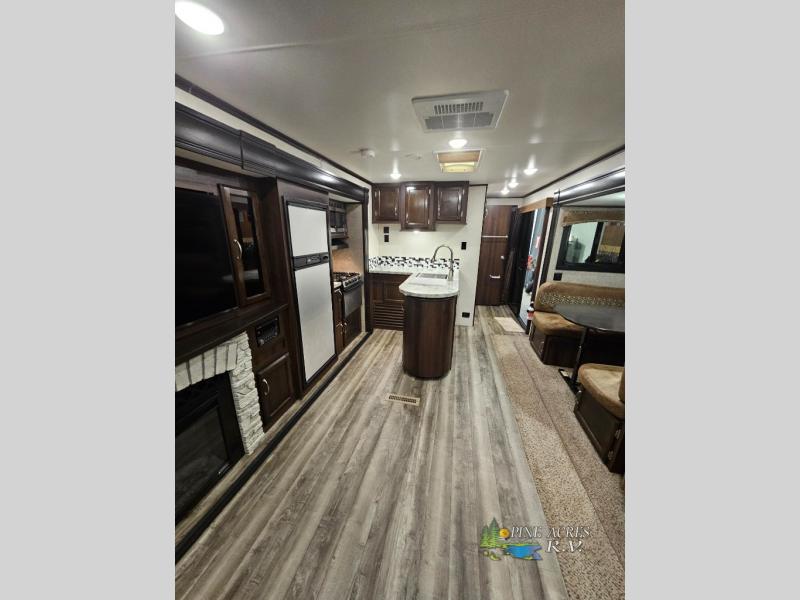 Can you picture yourself relaxing in the rear living area in this Jay Flight 34RSBS travel trailer? This model is perfect for a couple that enjoys plenty of space to invite other camper friends over or even the grandkids for a weekend away. The front master bedroom features a closet, and a second entry into the bathroom. The main living and kitchen area includes dual slide outs for more floor space, theater seats, and additional furniture that will provide extra sleeping space for the overnight guests. You will love watching the big game or a show while staying warm from the fireplace. Stop picturing yourself, and start camping in this Jay Flight!