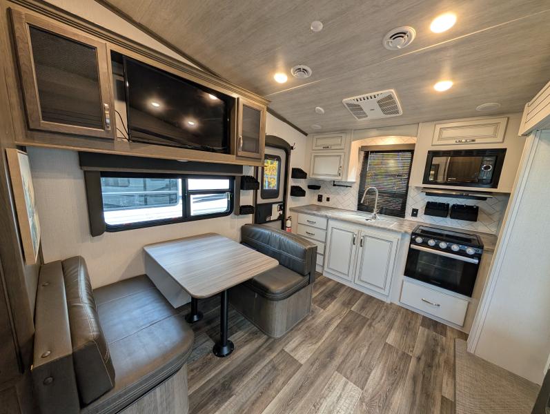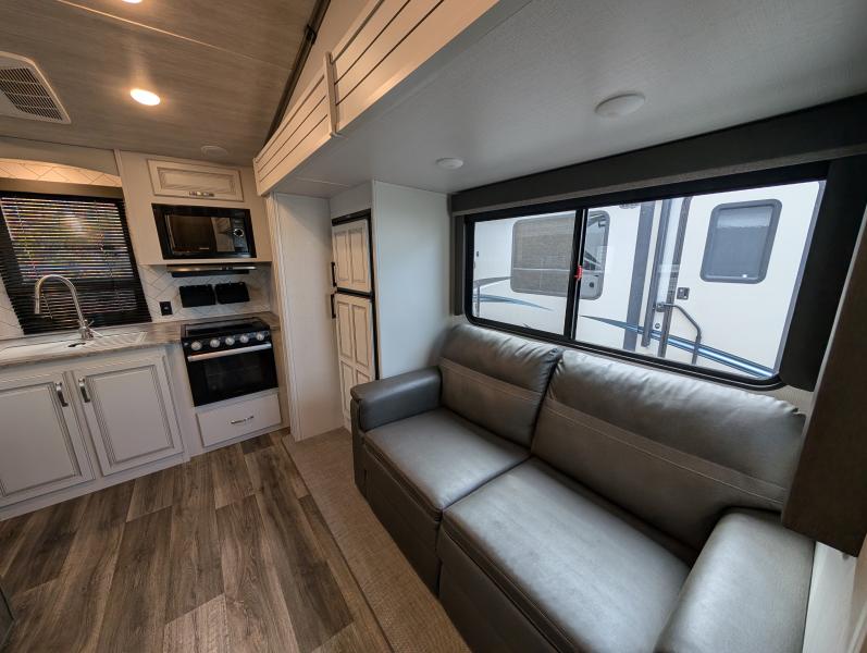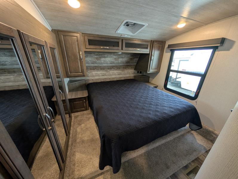 Cougar 23MLS 2021 une roulotte compacte et moderne idéale pour vos escapades. Elle est équipée d’un lit queen d’une banquette d’un réfrigérateur gaz/électrique d’un air climatisé 13 500 BTU et d’un slide topper offrant confort et praticité sur la route.