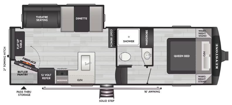 Cougar 2400RE 2026 – Confort et style se rencontrent dans cette unité parfaitement équipée. Profitez d’un foyer chaleureux pour vos soirées d’un réfrigérateur 12 volts moderne d’une banquette pratique et de fauteuils style théâtre pour un confort maximal. La Cougar 2400RE comprend aussi une télévision pour vos moments de détente et un lit queen offrant des nuits reposantes après vos journées sur la route.