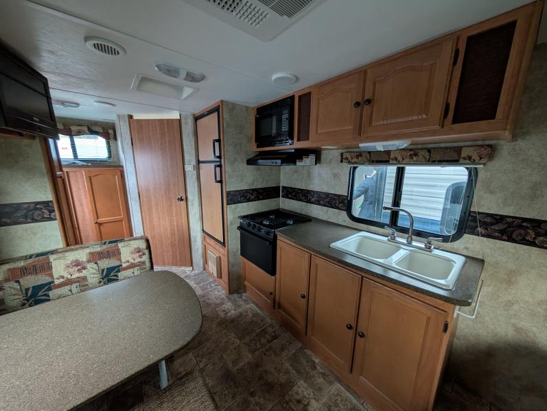 UNITÉ VENDUE TEL QUEL La Passport 195RB 2011 est une roulotte compacte et fonctionnelle parfaite pour vos escapades à deux. Elle comprend une banquette une télévision et un lit queen pour un confort agréable. Unité vendu tel quel.