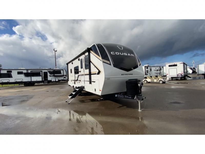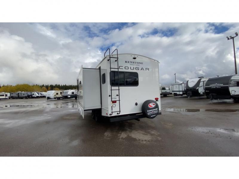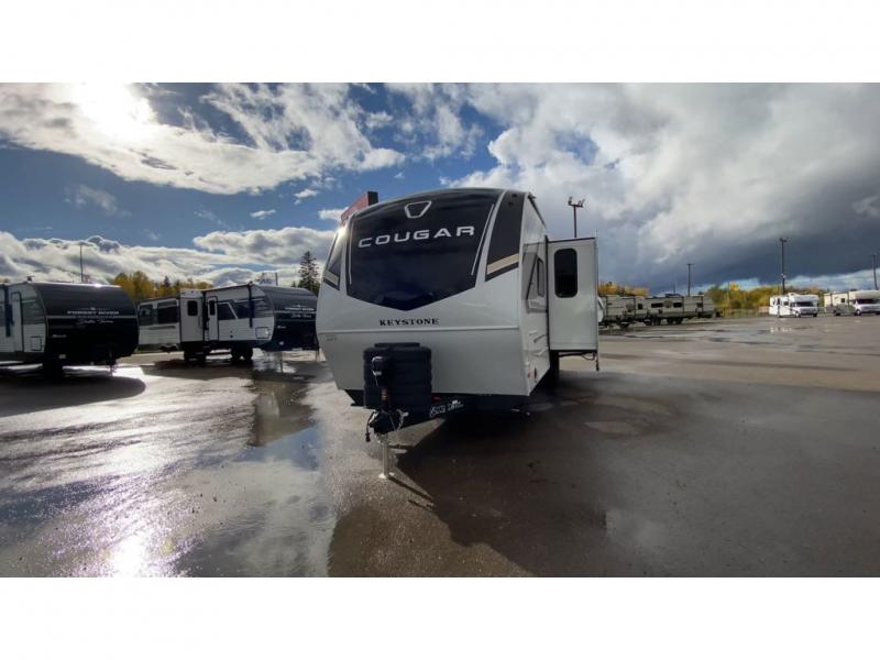 The Keystone Cougar Half-Ton fifth wheel and travel trailers are known as one of America's favorites for a reason! Some of those reasons are the exclusive features that come from Keystone, like the Winegard Air 360+ omni-directional rooftop antenna, the in-floor heating ducts, and the HyperCore composite wall construction with Vixen Fibrogloss high-gloss finish. The Cougar Half-Ton has a Climate Guard protection package with heat-deflecting white sidewalls, two roof attic vents, PEX plumbing and more to enjoy four season camping. Inside, you'll love the dimmable lighting, night roller shades throughout, shower skylight, and bedside USB outlets to keep your electronics charged.