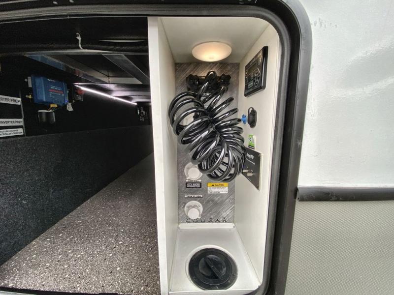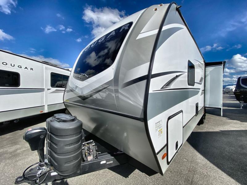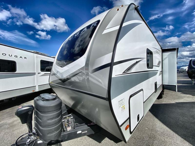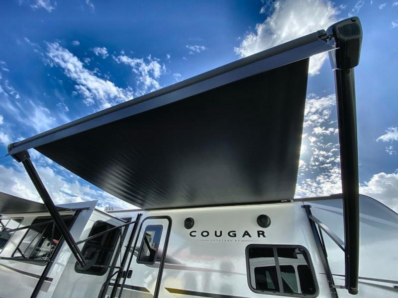The Keystone Cougar Half-Ton fifth wheel and travel trailers are known as one of America's favorites for a reason! Some of those reasons are the exclusive features that come from Keystone, like the Winegard Air 360+ omni-directional rooftop antenna, the in-floor heating ducts, and the Hyper Deck flooring. The Cougar Half-Ton has a Climate Guard protection package to keep you safe during inclement weather, along with two roof attic vents, PEX plumbing and more. Use the 17" Furrion range with Piezo ignition to create all of those familiar meals from home, and enjoy endless hot showers with the Girard tankless on-demand water heater!