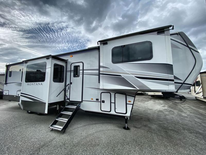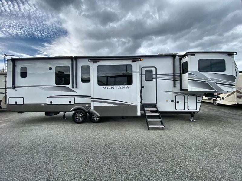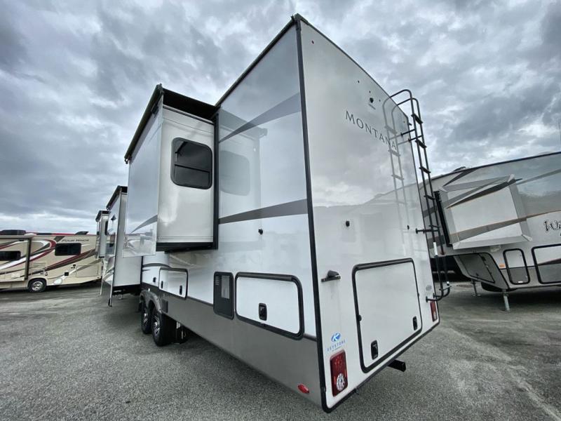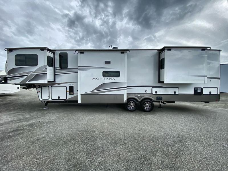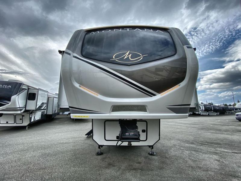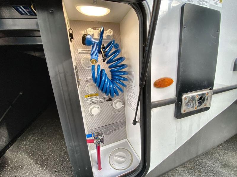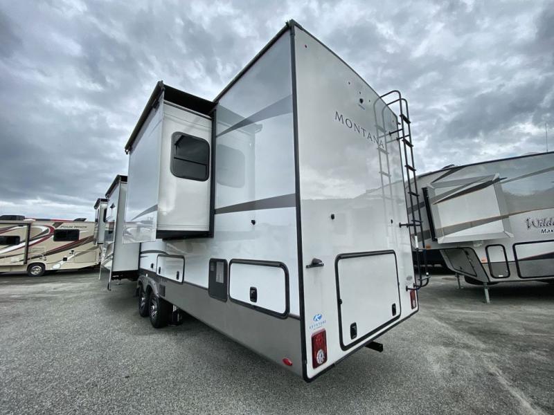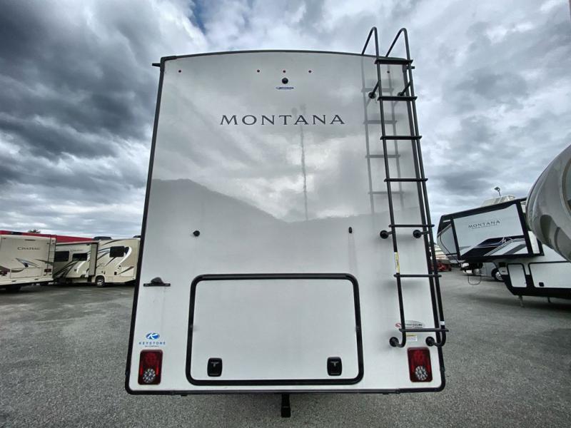 Enjoy luxury, innovation, and the outdoors in any one of Montana's finest fifth wheels. Each set the standard with exceptional features, and exciting factory installed options to provide you a great home on the road. Keystone's exclusive 12" I-beam chassis with z-frame technology has been reengineered to be stronger, lighter and built for "the long haul". A few other construction features you will appreciate include a Road Armor suspension, 2" thick, dual-layered lauan high gloss fiberglass sidewalls, a MaxTurn front cap with KeyShield automotive-grade paint, and a fully walkable roof with an Alpha seamless TPO membrane system. Each feature stylish interiors with two new decor choices paired with beautiful hand-glazed hardwood cabinetry, vinyl flooring throughout, central vacuum, plus a Blade Pure airflow system for clean, quite, and cool air!