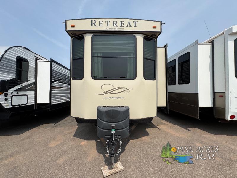 Keystone Retreat destination trailers should be your next choice when it comes to an extended stay unit. You have plenty of interior features to make it a home away from home. There are large bay windows that will add light to your unit and 8 ft. ceilings giving the space an open feel. The main living floors are Daro wrapped to keep the moisture out! The exterior is built to last with the reinforced superframe and slide out room openings. There is a black tank flush and a detachable hitch for some added convenience throughout your vacation. Come take a look at the Retreat destination trailers today!