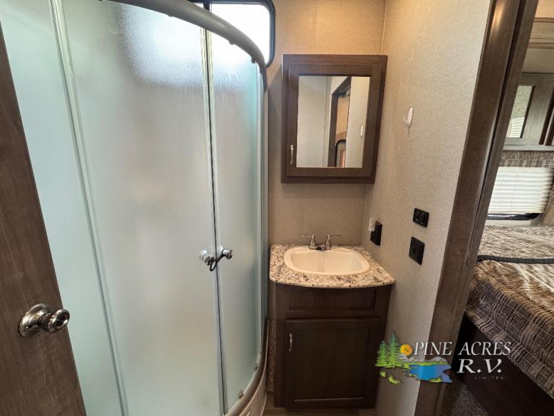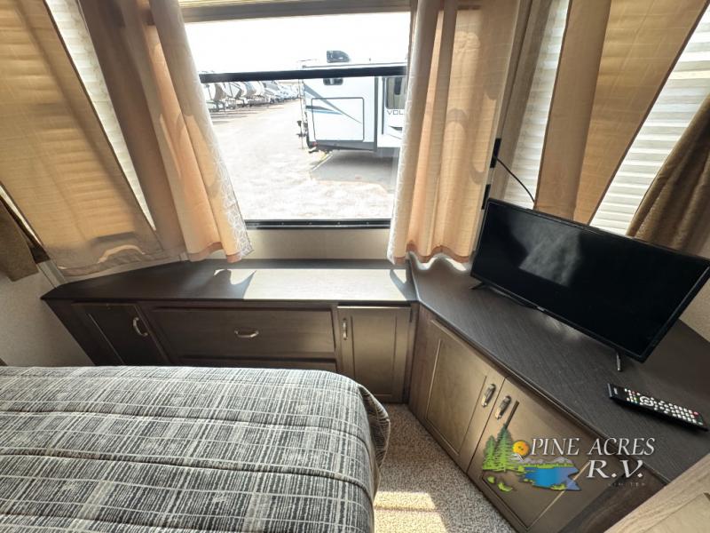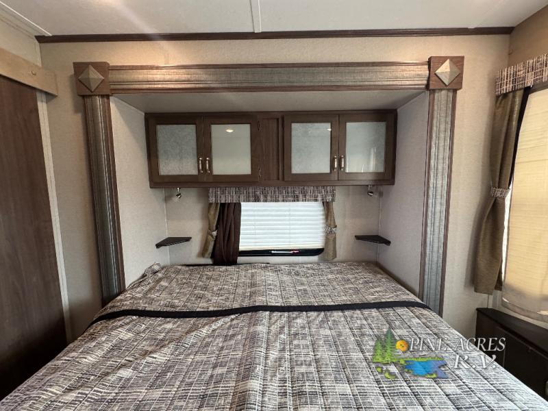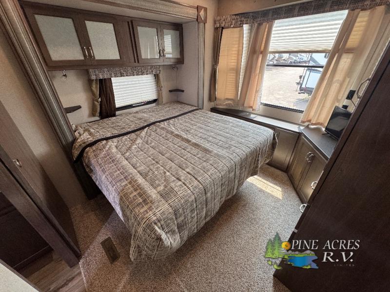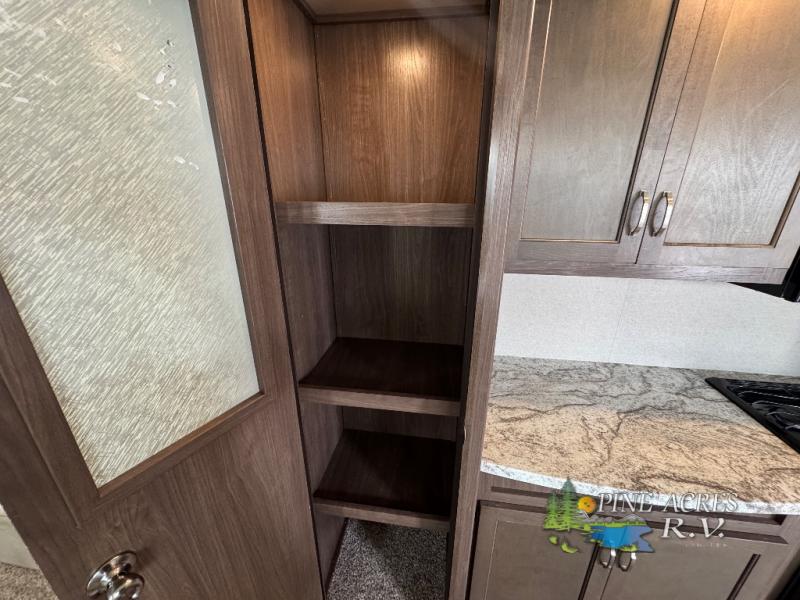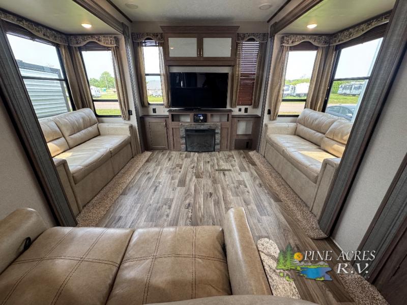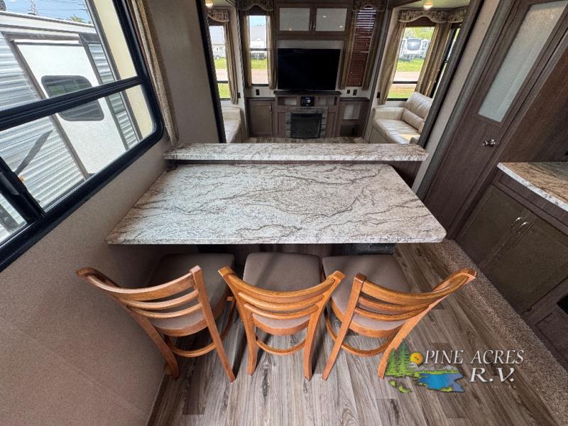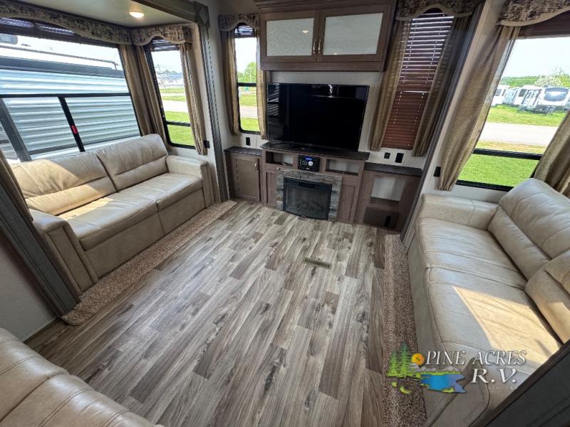 This 391RDEN is the unit you want to take a look at if you are planning on vacationing for a long period of time. This rear living unit gives your guests space of their own if they want to use the sleeper sofas for their sleeping space at night. The private front bedroom has a king bed and plenty of storage options for your things. There is a private entry door into the bathroom for convenience especially at night. The kitchen is nice and big, giving you plenty of space for prepping for meals, cooking them and cleaning up afterward. The residentially sized fridge will give you plenty of room for storing your perishables while you are away from home.