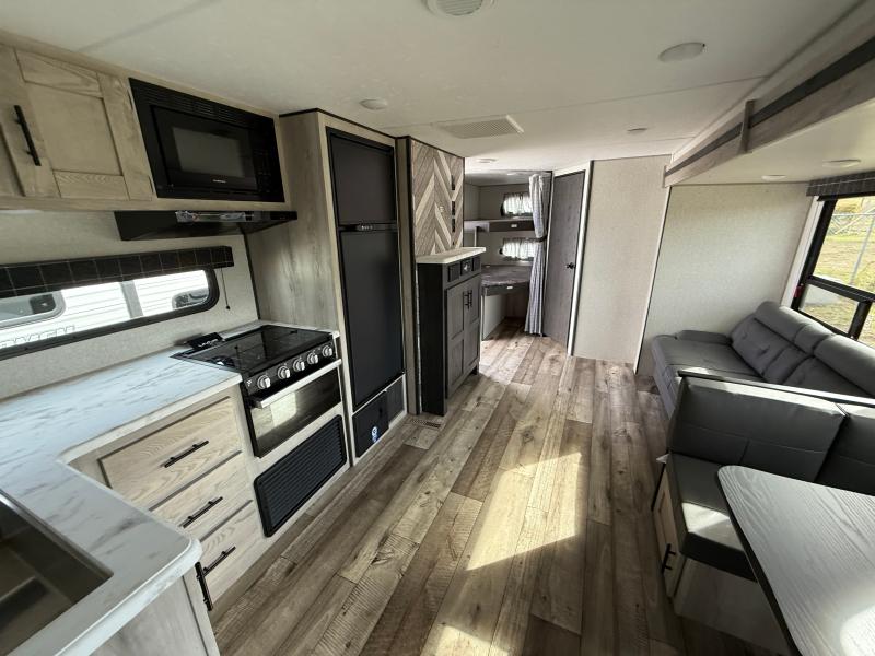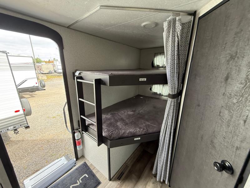 KZ Connect C271BHKSE 2022 – Roulotte familiale avec cuisinette extérieure banquette lit queen lits superposés et marche-pied parfaite pour des séjours confortables et pratiques.