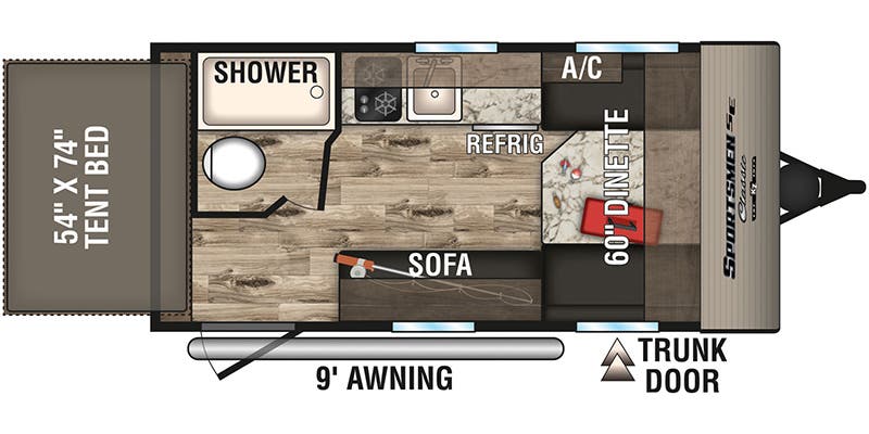 Sportsmen 150RBTSE 2020 – Roulotte compacte et confortable avec banquette et lit queen parfaite pour des escapades pratiques et relaxantes.