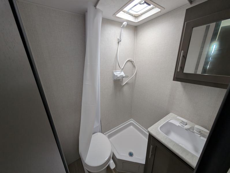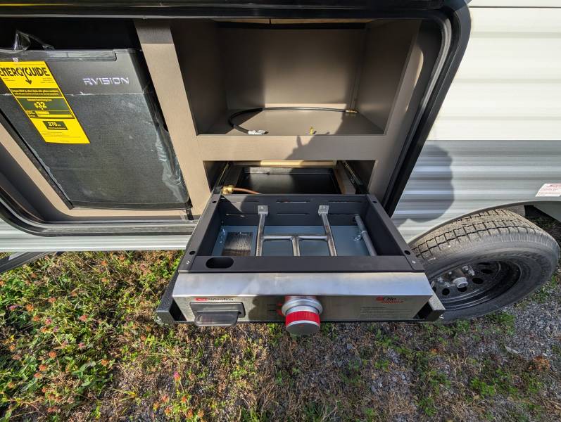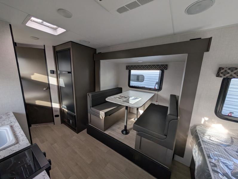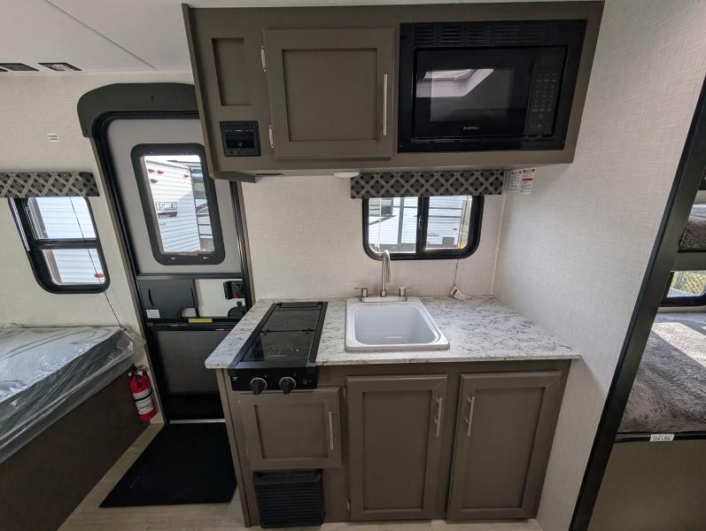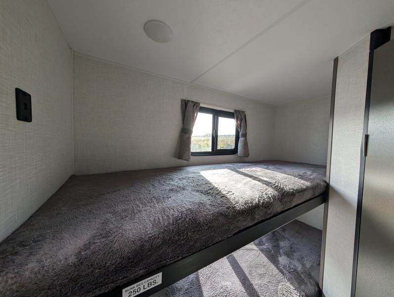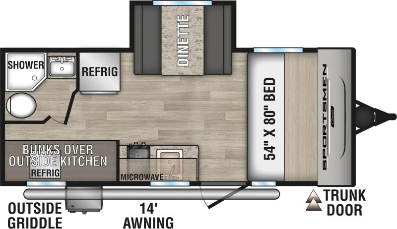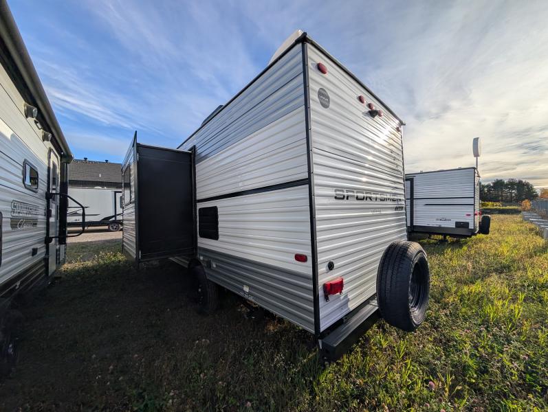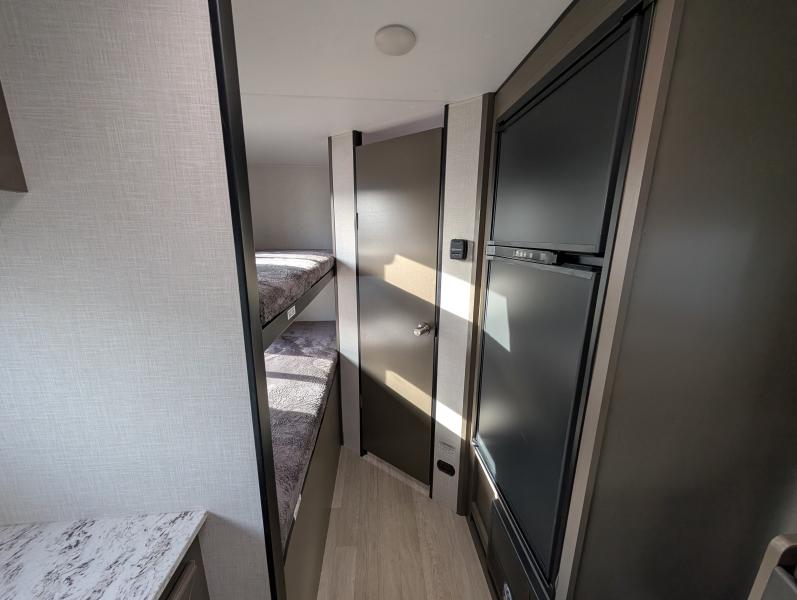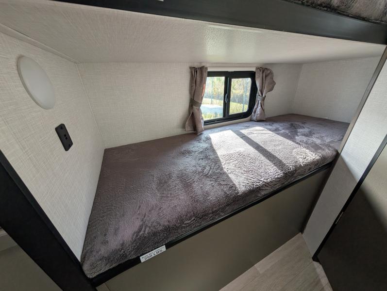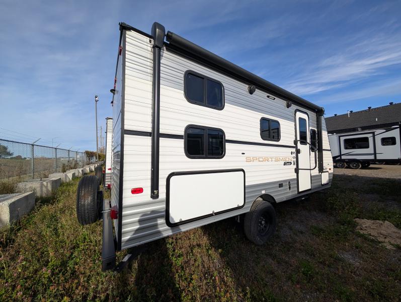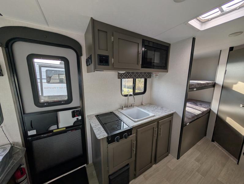 KZ Sportsmen 191BHK 2024 – Roulotte familiale avec cuisinette extérieure banquette lit queen et lits superposés idéale pour des séjours confortables et pratiques.