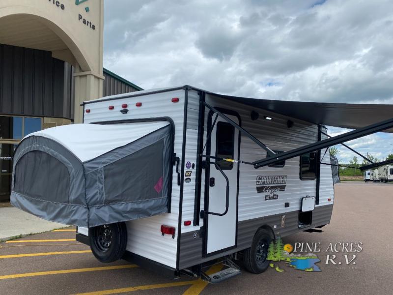 With any Sportsmen Classis travel trailer, expandable, or toy hauler by KZ you will find durable construction materials, like the 3/8" full-walkable roof and the one-piece seamless Tufflex material. Each model includes scissor-style stabilizer jacks, a Key-Alike program for baggage and entry doors, and a Leash Latch with a bonus beverage opener. You will find interior and exterior speakers, a new three-toned exterior metal, plus backup camera prep and solar prep. The Sportsmen Classic is designed to make you feel at home with LED interior lights, rail-style cabinet doors, residential grade linoleum, and plenty of storage space for all your belongings.