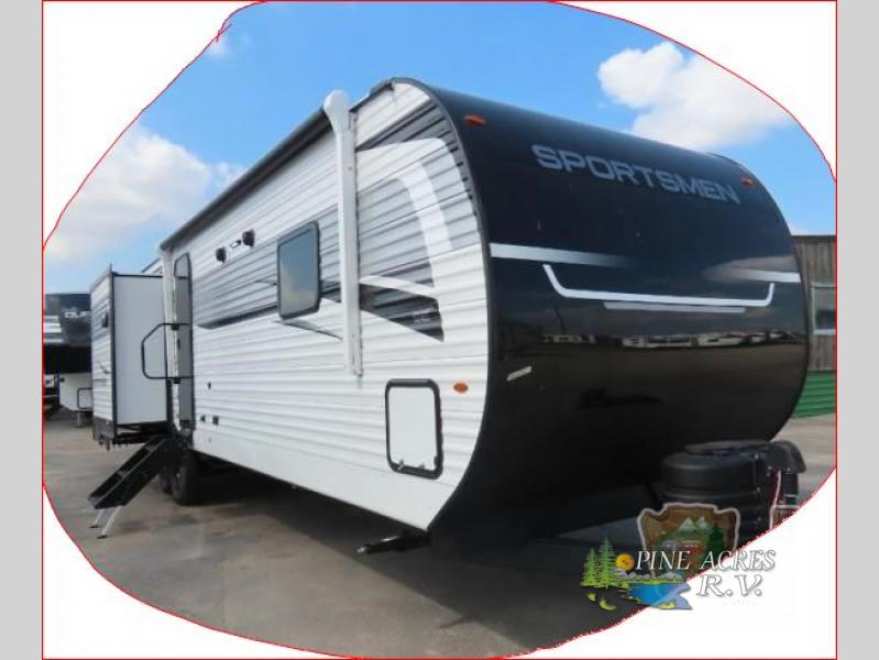 Each Sportsmen SE travel trailer and toy hauler by KZ is constructed with KZ exclusive tough shield exterior metal, a one-piece seamless walk-on Tufflex roofing material, and diamond plate rock guard to protect your unit from road debris. You will appreciate the extra large baggage doors for stowing away your gear when not in use, and tinted windows to help keep the harmful sun rays out plus keeping it cooler inside. Some of the exterior conveniences found in the mandatory Advantage Package are the solid folding steps with a large folding grab handle for easy entry and exit, a full glass friction hinged entry door, plus an exterior shower for your pets or to rinse off before you head inside. You'll also appreciate the nitrogen-filled tires, solar and backup camera prep, plus a Leash Latch with a bonus beverage opener. You'll feel right at home inside with linoleum flooring throughout, a 13,500 BTU air conditioner, large overhead cabinets, a shower surround, and much more!