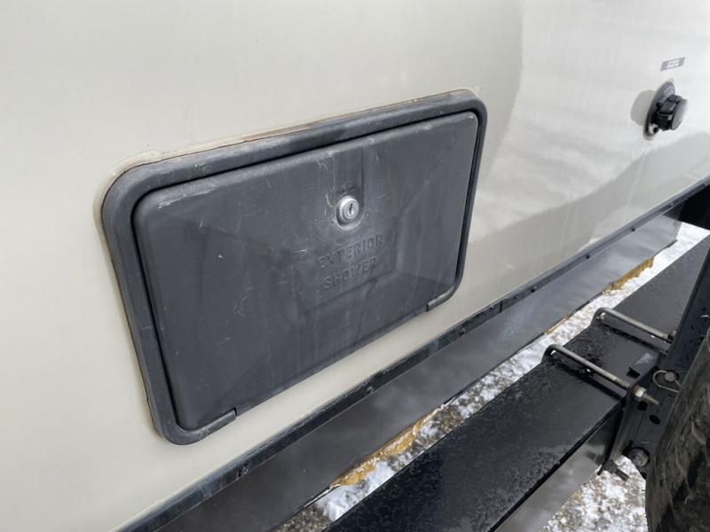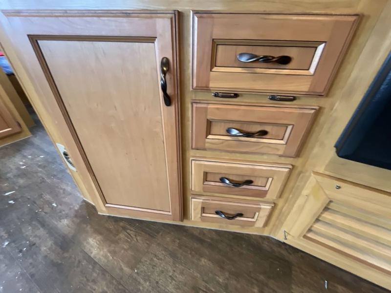 There is plenty of overhead cabinets throughout this travel trailer as well as a front exterior trunk door.