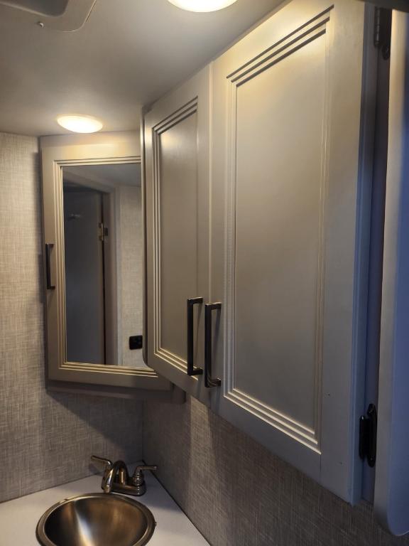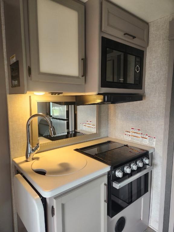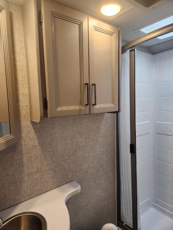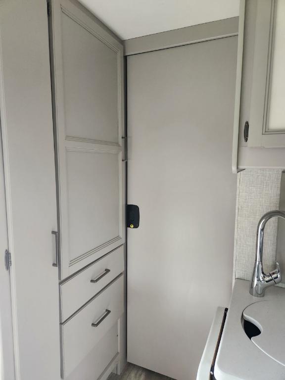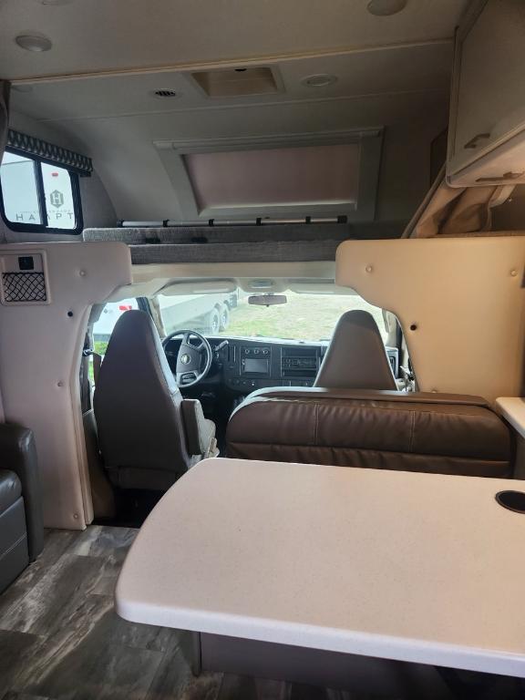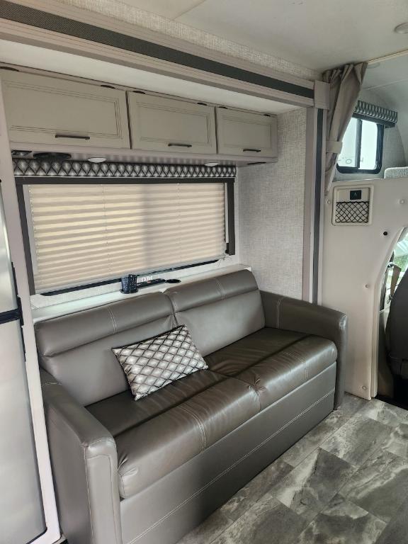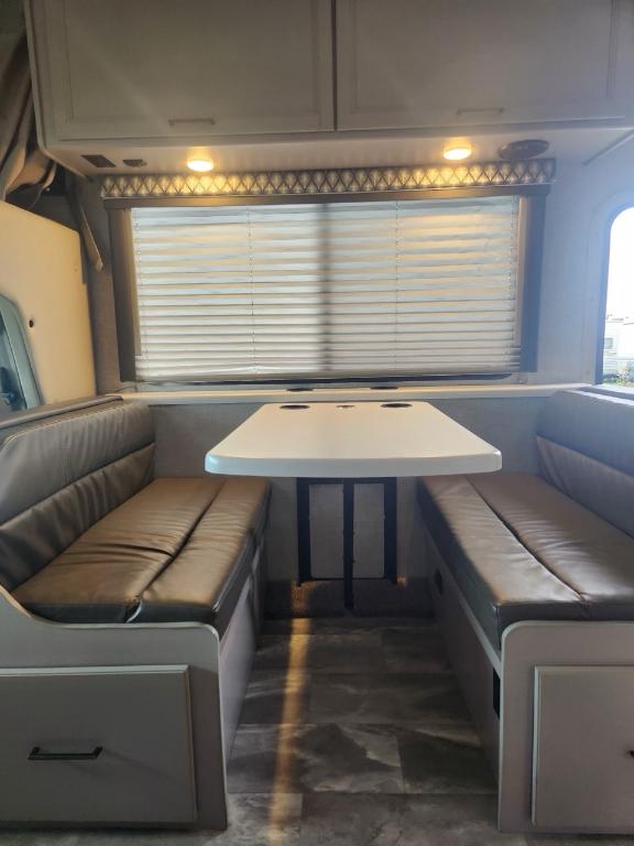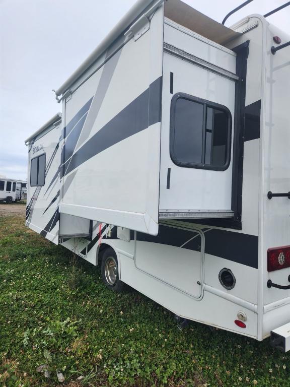 Châssis : Ford E-350 Moteur : V8 Triton de 73 L Puissance : 350 ch à 3 900 tr/min Couple : 468 pi-lb à 3 900 tr/min Type de carburant : Essence Capacité de remorquage : 3 628 kg (8 000 lb) Dimensions et capacité Longueur : 76 m (25 pi) Hauteur intérieure : 213 cm (84 po) Eau douce : 172 litres (40 gallons) Eaux grises : 134 litres (33 gallons) Eaux noires : 134 litres (33 gallons) Propane : 35 litres (94 gallons) / 18 kg (40 lb) Chauffe-eau : 27 litres (6 gallons) Nombre maximal de couchages : 6 Nombre de rallonges : 1 Le motorisé est équipé d'une génératrice 4000 watts de 3 panneaux solaires 200 watts et 2 batteries lithium 100 Ah. Son espace intérieur est vaste la capucine offre un grand lit double du rangement et un téléviseur 40 pouces (qui peut se diriger vers la dînette). La dînette (4 places) qui se transforme en lit est près de l'espace canapé qui se transforme en lit Queen et faisant face à un deuxième téléviseur 39 pouces. Dans le fond du motorisé la salle de bain avec sa propre porte dispose d'un évier toilette et douche. La cuisine nous ramène près de la porte d'entrée avec tout le confort moderne plaques de cuisson au gaz four et micro-ondes ! Avec ses réservoirs d'eaux et ses panneaux solaires on peut être en autonomie totale pendant plusieurs jours.