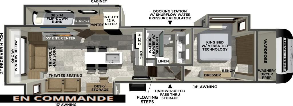 ⚙️ Spécifications mécaniques : • Moteur : PUSHER DIESEL Cummins / I6 • Puissance : 360 chevaux • Type de carburant : Diesel • Transmission : Automatique à 6 vitesses / Allison • Châssis : Série XC/ Freightliner ???? Dimensions & Capacités : • Longueur totale : 3475 pieds • Réservoir d’eau douce 91 gallons • Réservoirs d’eaux usées :102 gallons • Couchages : Jusqu’à 8 personnes ???? En résumé : l’intérieur est pensé pour le confort et la fonctionnalité avec des matériaux modernes des couleurs neutres et un aménagement haut de gamme idéal pour voyager tout en ayant les commodités d’une maison.