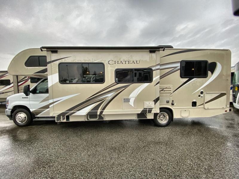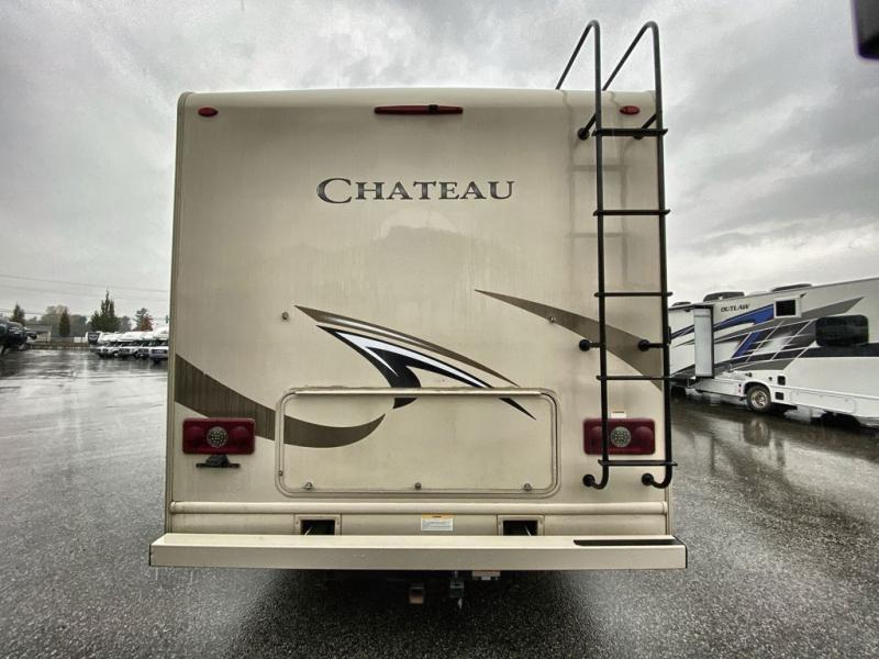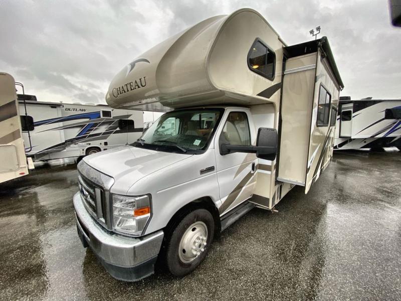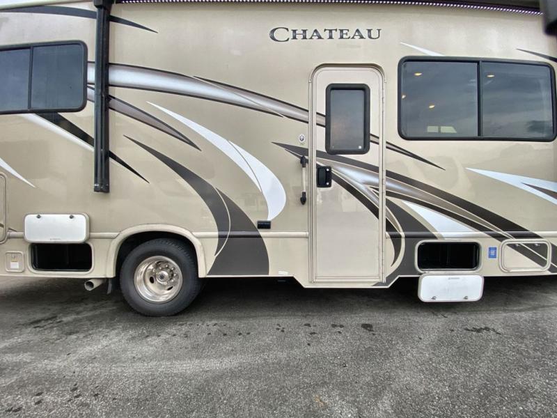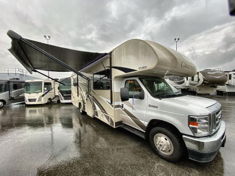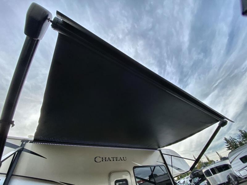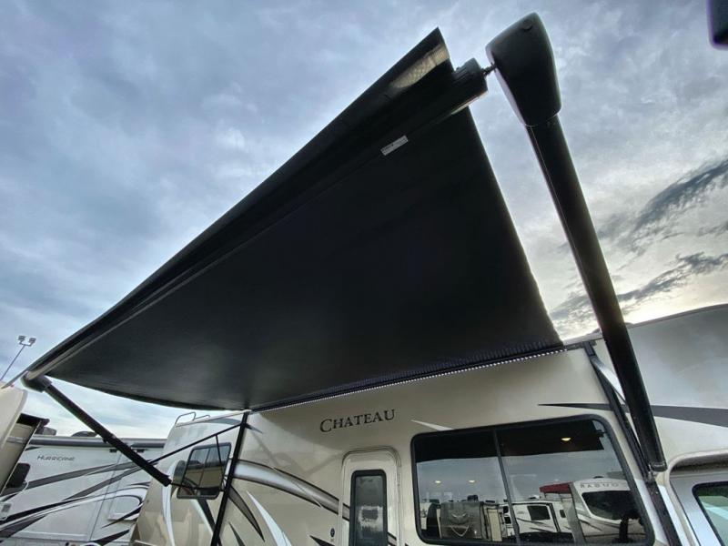 Comfort, convenience, and class is what you'll find in this Chateau Class C gas motorhome! A rear private bedroom is your place to relax at night on the walk-around RV queen bed, and you can also grab a change of clothes from the bedside closets before heading out for an afternoon hike. A large slide in the main living area gives you space to cozy up on the 68" jackknife sofa while you watch a movie on the 39" TV. The cook will love all the kitchen amenities at their fingertips, plus the extra sleeping space on the 54" x 96" bunk over the cab and furniture is perfect when you have overnight guests. If you like, choose a few options such as theater seating, a bedroom 32" TV, and/or an exterior 32" TV.