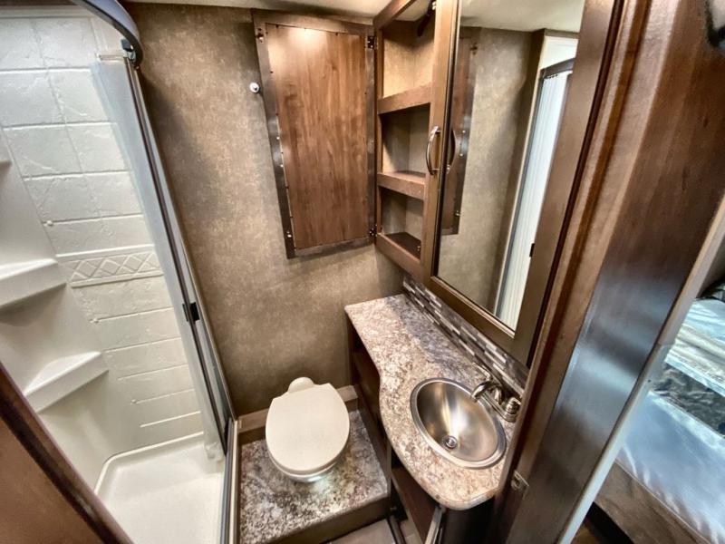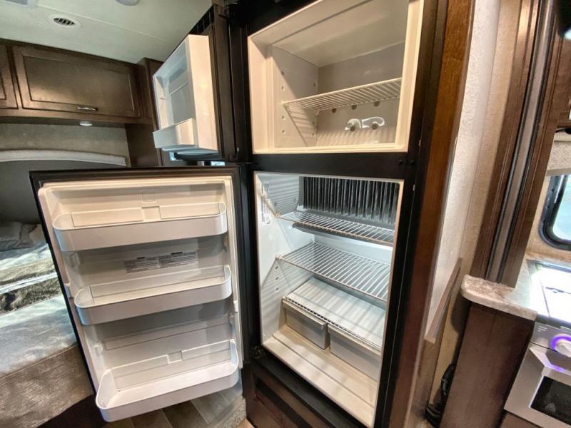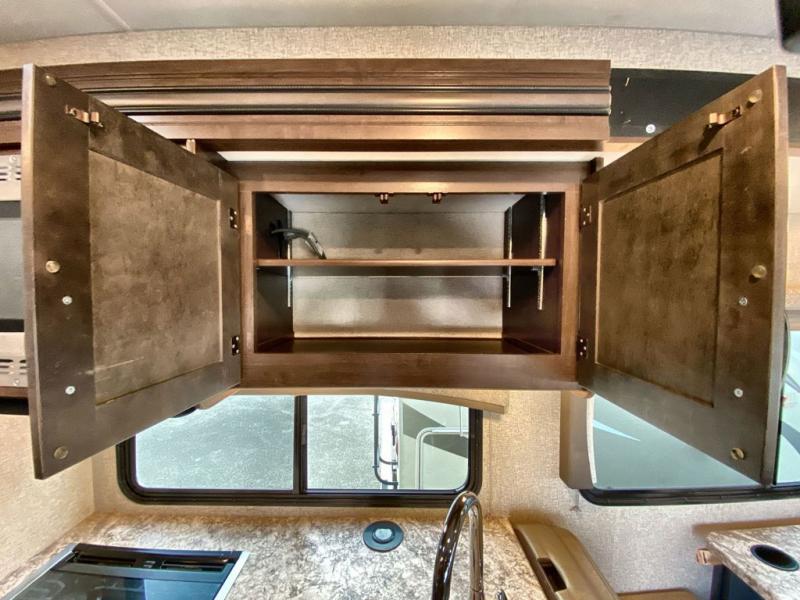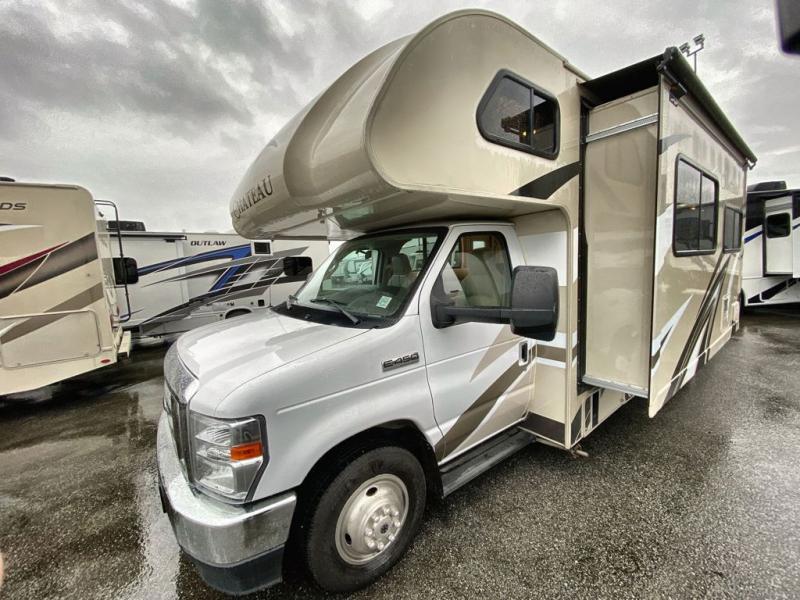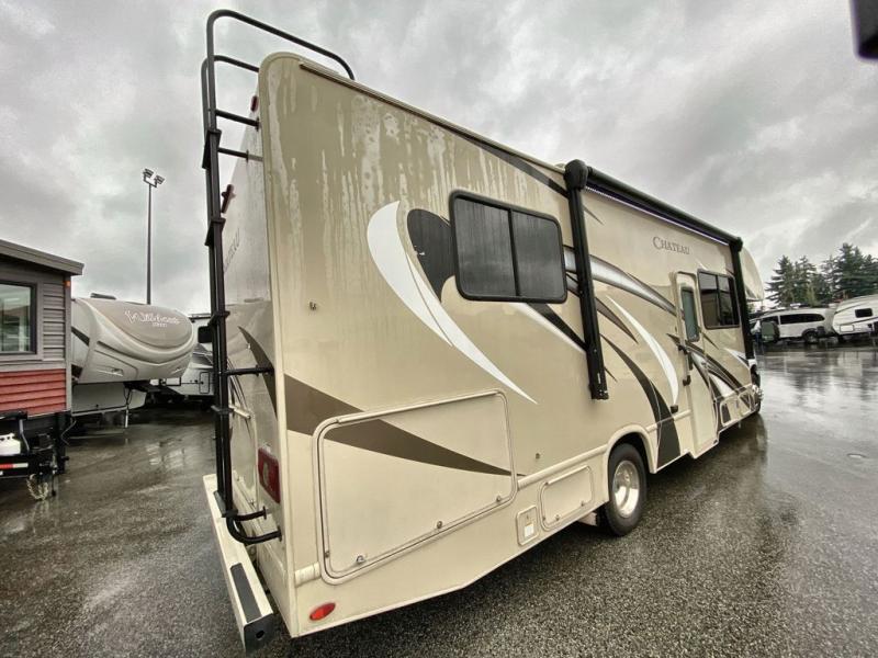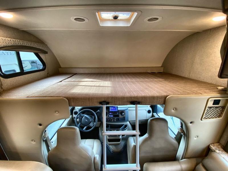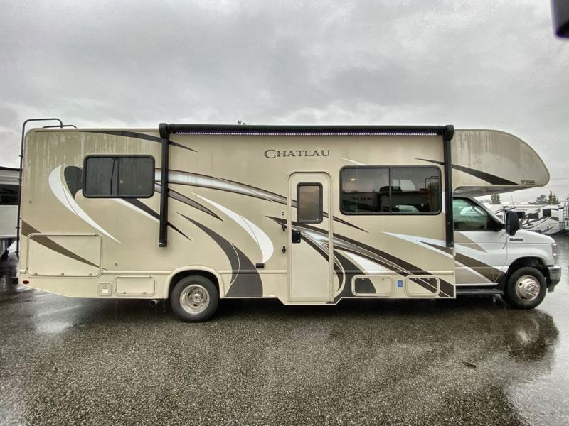 Comfort, convenience, and class is what you'll find in this Chateau Class C gas motorhome! A rear private bedroom is your place to relax at night on the walk-around RV queen bed, and you can also grab a change of clothes from the bedside closets before heading out for an afternoon hike. A large slide in the main living area gives you space to cozy up on the 68" jackknife sofa while you watch a movie on the 39" TV. The cook will love all the kitchen amenities at their fingertips, plus the extra sleeping space on the 54" x 96" bunk over the cab and furniture is perfect when you have overnight guests. If you like, choose a few options such as theater seating, a bedroom 32" TV, and/or an exterior 32" TV.