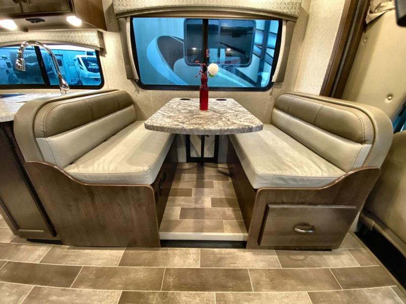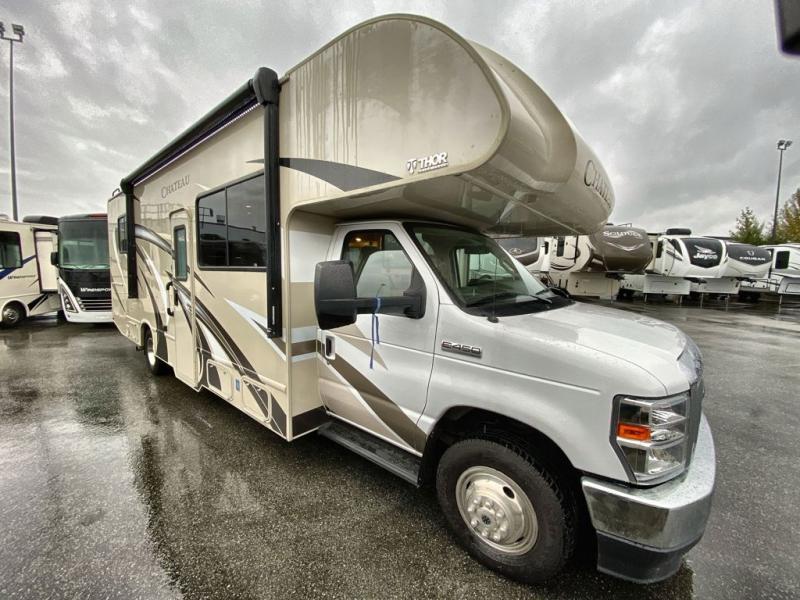 With each Thor Motor Coach Chateau Class C gas motorhome, you will have a Ford E-Series chassis or Chevrolet chassis depending on the model you select, and both are built with a welded tubular aluminum roof and sidewall cage construction giving you a sturdy foundation to enjoy for years! The added Onan RV QG 4000 gas generator will allow you to get off-grid so that you can experience nature without anything holding you back. Once you step foot inside, you'll find a space-efficient design, plush leatherette seating, residential vinyl flooring that provides easy care and a pet-friendly floor, a large single-bowl stainless steel sink with single handle faucet and pull-down sprayer, plus a bedroom USB power charging center for your electronics. Choose your favorite Chateau and start planning your adventures!