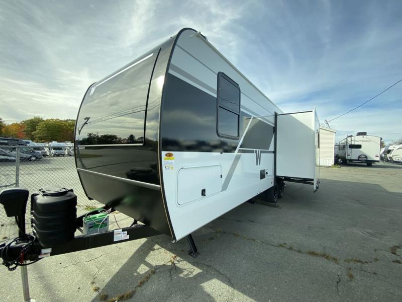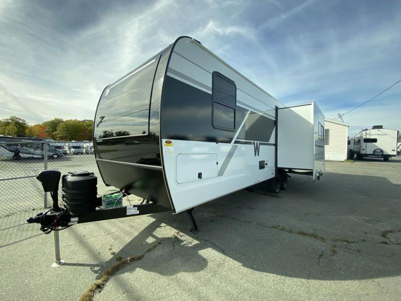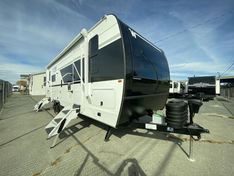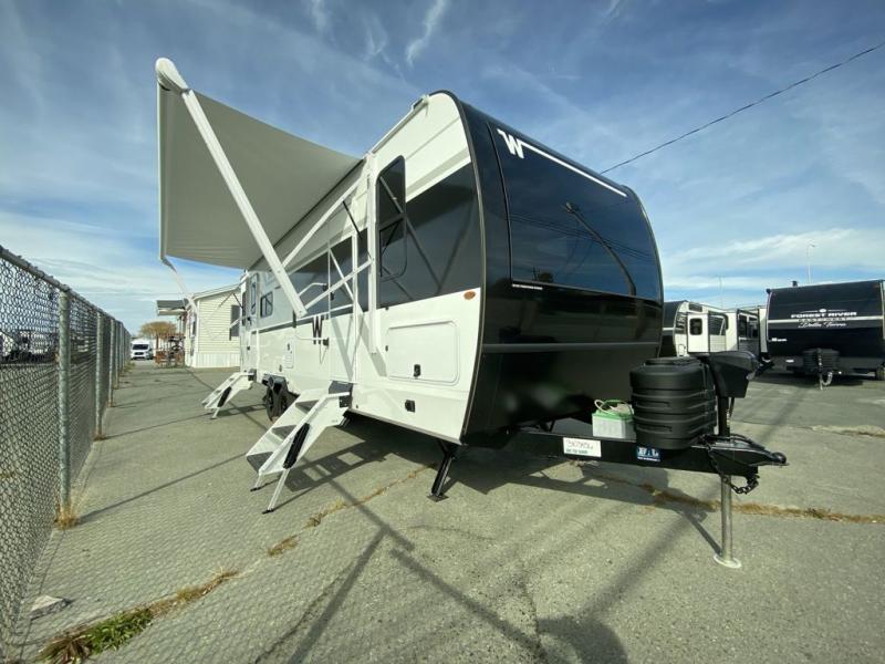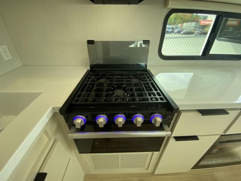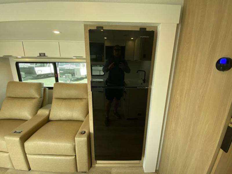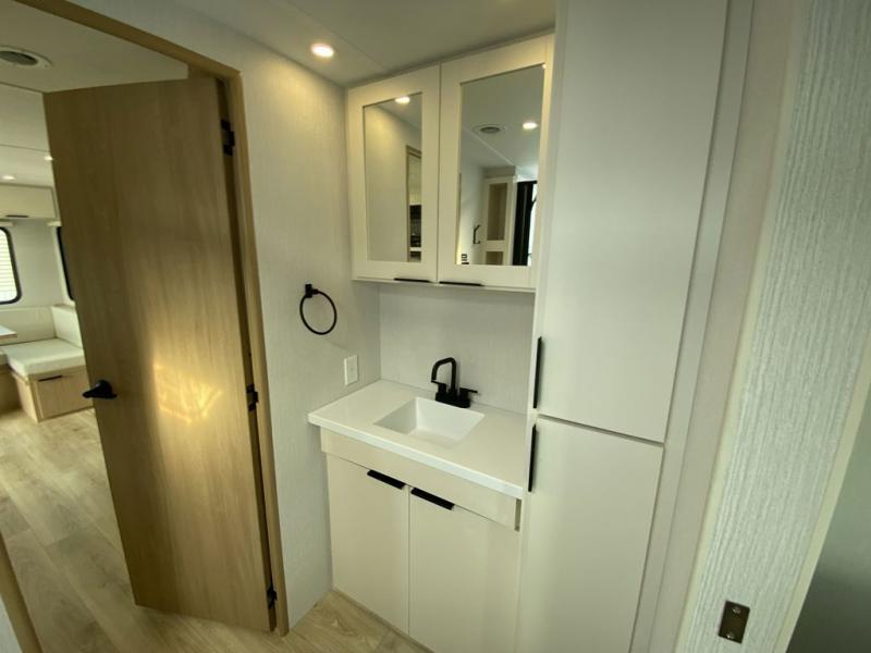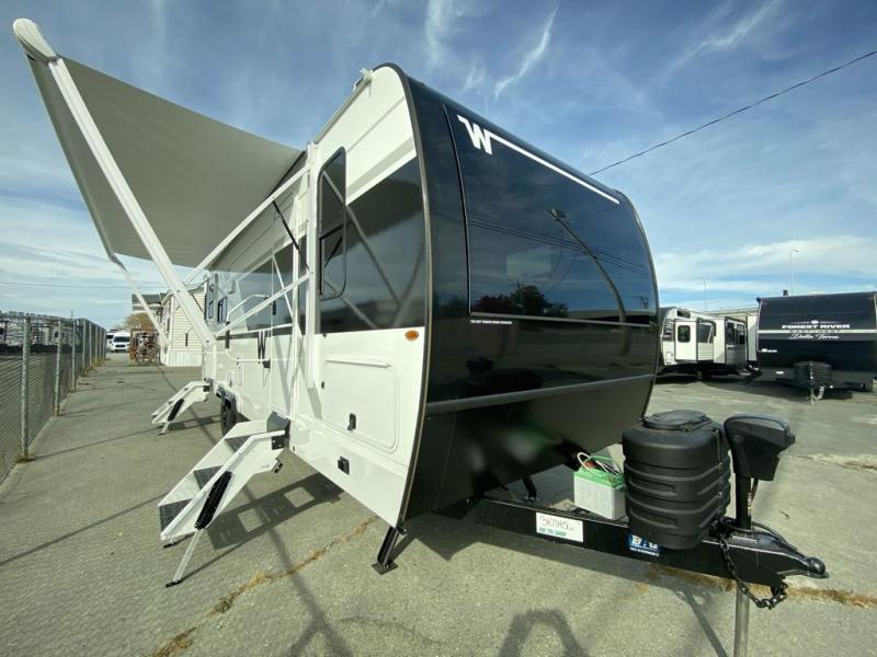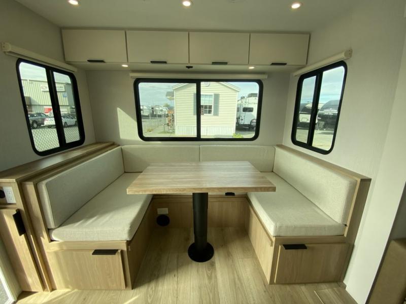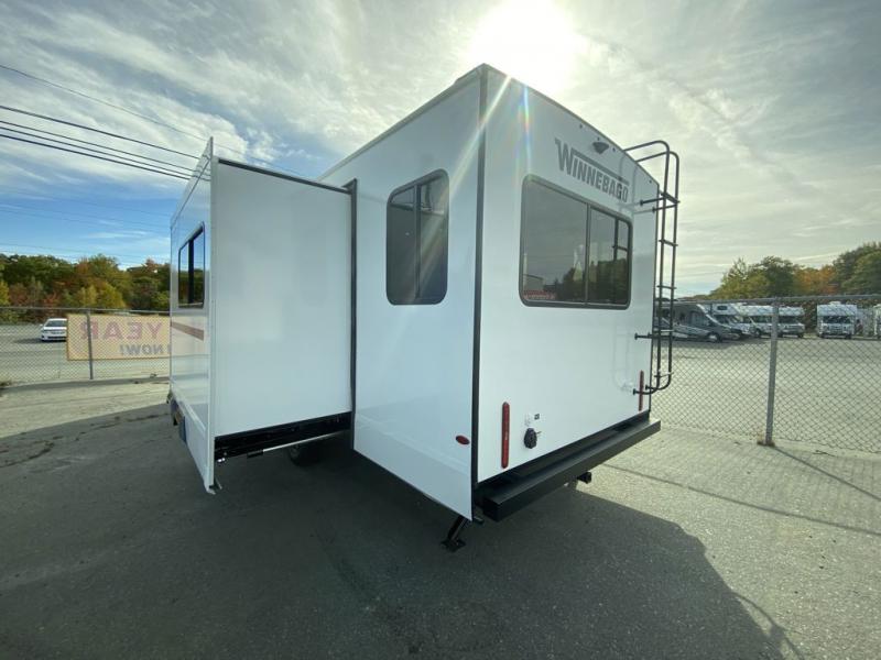 With any Thrive travel trailer by Winnebago, you can camp with functionality, comfort, and convenience! The large front viewing window with strike guard will be the first thing that catches your eye, and the fiberglass sidewalls with Azdel Onboard provide a durable trailer made to last. There is also an exterior ladder, along with front radius profile lights, power stabilizer jacks, and a powered awning with LED lighting to name a few exterior features. You will stay powered up by the 30-amp power cord and 200-watt solar panel, plus there is a tankless water heater for endless hot showers. Inside, you'll love the custom Winnebago furniture, carpetless side outs, molded fiberglass countertops, and residential recessed ceiling lights to keep your space well lit!